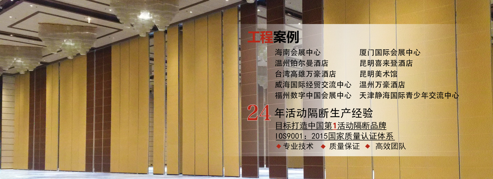 135 3317 7889 何經(jīng)理/189 8866 7889李經(jīng)理廣東一固隔斷制品有限公司成立于1998年,國家高新技術(shù)企業(yè),位于中國佛山市南海區(qū)里水鎮(zhèn),是一家專業(yè)從事活動隔斷和辦公室玻璃隔斷系統(tǒng)開發(fā),銷售,生產(chǎn)和售后服務(wù)的一站式生產(chǎn)廠商。公司產(chǎn)品廣泛應用于星級飯店,寫字樓,餐廳,宴會廳,會議中心或會展中心等商業(yè)場合,提供便捷有效的空間管理解決方案。最高門板高度可達20米,最大隔音系數(shù)可達56分貝。 一固公司擁有兩個現(xiàn)代化的生產(chǎn)基地,占地超過10,000平方米,...
